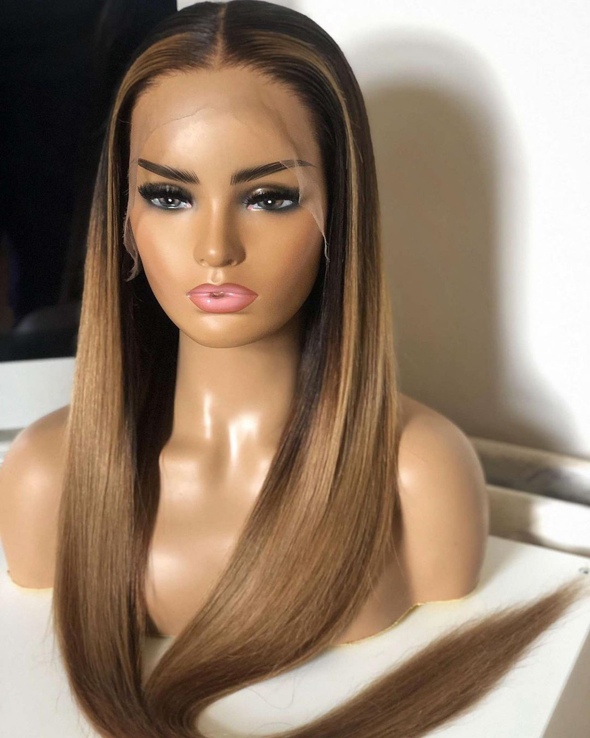 Indulge in the ultimate luxury experience with our Trophy Wife Lace Frontal Unit. This exquisite unit is crafted using only 100% virgin hair, it has also been hand dyed, cut and styled ensuring the highest quality. The thin HD lace adds a touch of elegance, giving you a flawless look every time. Don't settle for less, let our beautiful and classy Trophy Wife unit be your go-to choice.